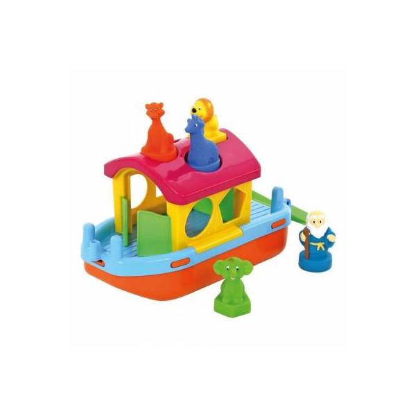 Arca este o jucarie pentru bebelusi inspirata din relatarea biblica a supravietuirii potopului de catre Noe si familia lui, insotit de animale din toate speciile intr-o ambarcatiune uriasa, menita sa supravietuiasca unei ploi torentiale de 40 zile si 40 nopti. nSetul contine o arca si 5 personaje: Noe si 4 animale. Arca este prevazuta cu patru orificii si patru locasuri de forme diferite: cerc, patrat, pentagon si oval, prin care vor putea fi introduse sau in care vor putea fi asezate animalele.nCopiii vor putea invata sa potriveasca formele, dar si sa recunoasca urmatoarele animale si culori: girafa albastra, elefantul verde, leul galben si tigrul portocaliu.nArca este dotata cu usi si rampa mobila si pluteste pe apa, copiii putand invata povestea lui Noe in timp ce fac baie. Acoperisul este demontabil.