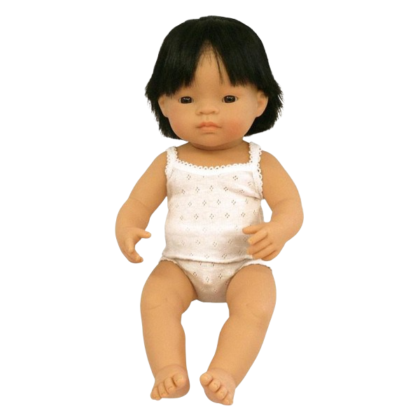 Papusa este din vinil si poate fi spalata si imbaiata.