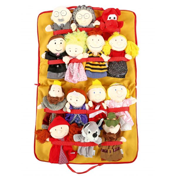 Geanta este echipată cu un mâner si un fermoar ce permite deschiderea completă a husei. Contine elastice ce țin marionetele în loc. Datorită acestui lucru, puteți atarna geanta deschisă în cameră, iar papusile rămase la vedere îi vor încuraja pe copii să se joace mai des.