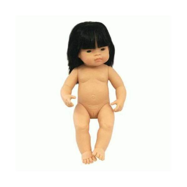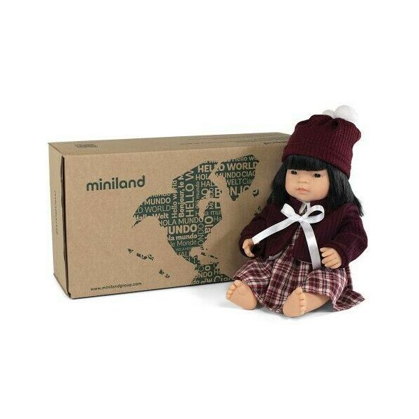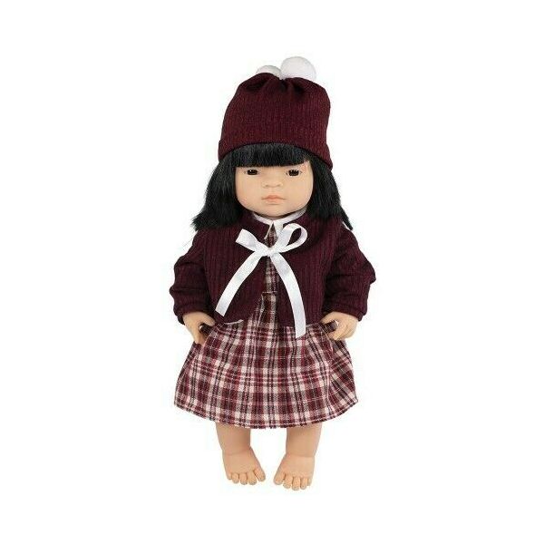 Papusa Bebelus Fetita Asiatica 38 cm cu set imbracaminte pentru vreme rece