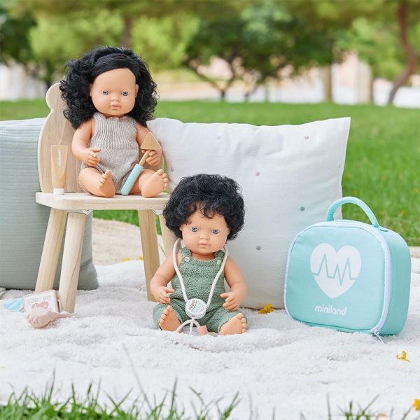 Papusa educativa 38 cm Baiat caucazian cu par negru si ondulat