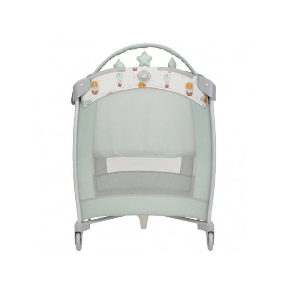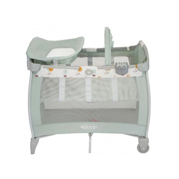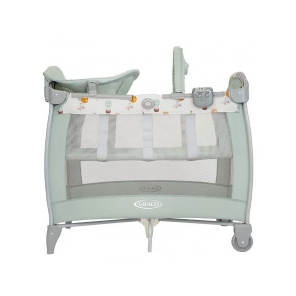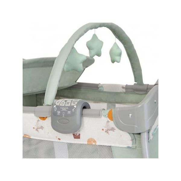 Un etaj superior detasabil, este conceput pentru a face somnul bebelusului confortabil si sigur, de la nastere pana la aproximativ 6 luni (9 kg). Patutul Graco Contour Electra include masa de infasat, arcada cu jucarii din material textil si un dispozitiv detasabil cu functii precum muzica, vibratii si lumina de veghe.