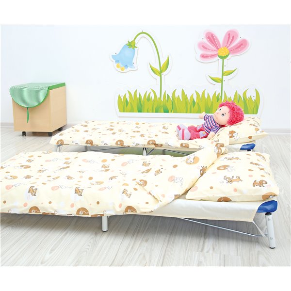 Lenjerie din 5 piese pentru pat de gradinita stivuibil, Pets Ocru
