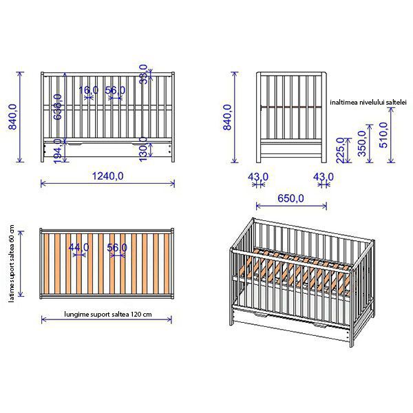 Inaltime nivel inferior (masurat de la sol): 22,5 cm.