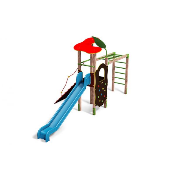 Turnului este dotat cu un tobogan cu urechi mari, cu un perete de cățărare cu pietre în diferite forme /culoare pentru a ajuta pe cei mici. Alte dotări: scara, plasa de cățărare, bare care sunt la îndemână de a îmbunătățind prin mișcare capacitatea de coordonare a copiilor.