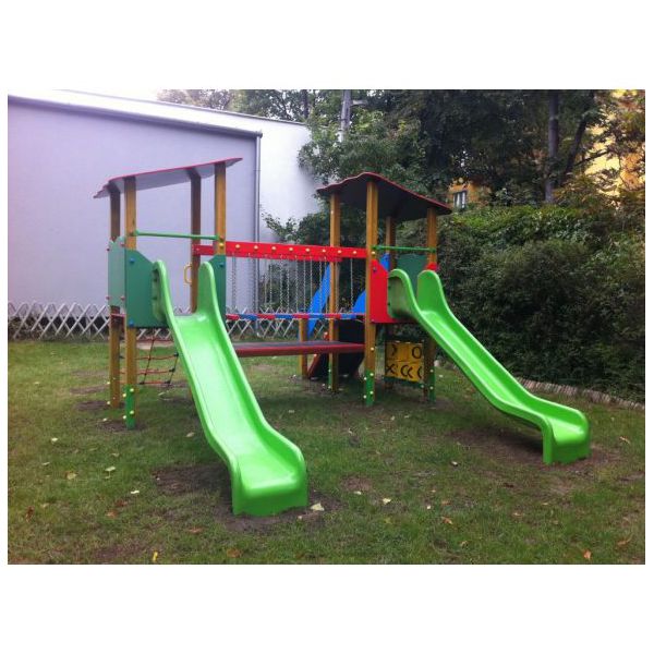 Turnului este dotat cu un tobogan cu urechi mari, cu un perete de cățărare cu pietre în diferite forme /culoare pentru a ajuta pe cei mici. Alte dotări: scara, plasa de cățărare, bare care sunt la îndemână de a îmbunătățind prin mișcare capacitatea de coordonare a copiilor.