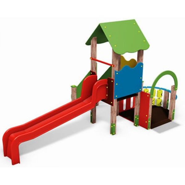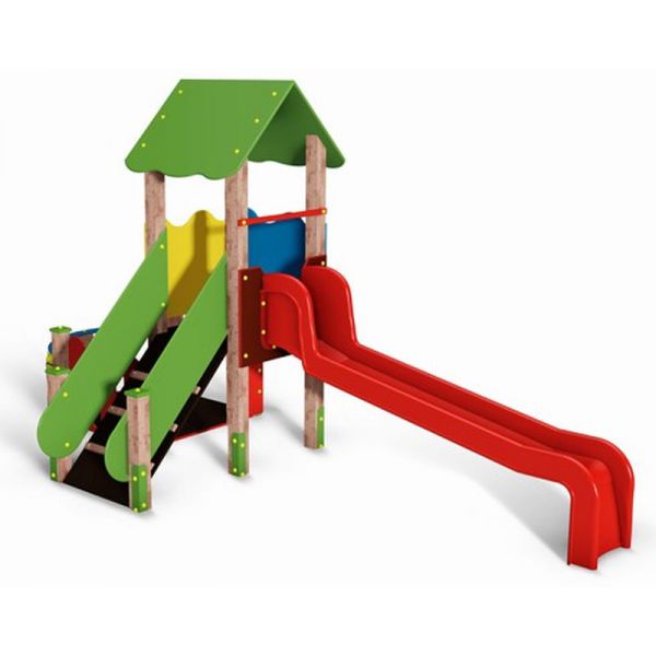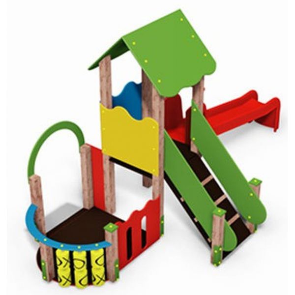Complexul este alcătuit din 2 părti: un turn cu tobogan si un loc de joacă semicerc.