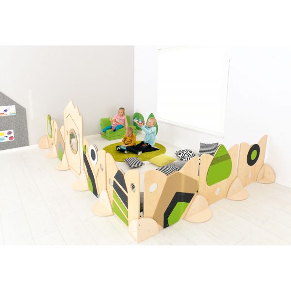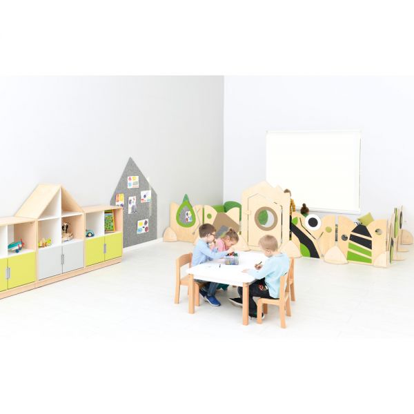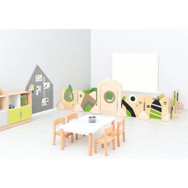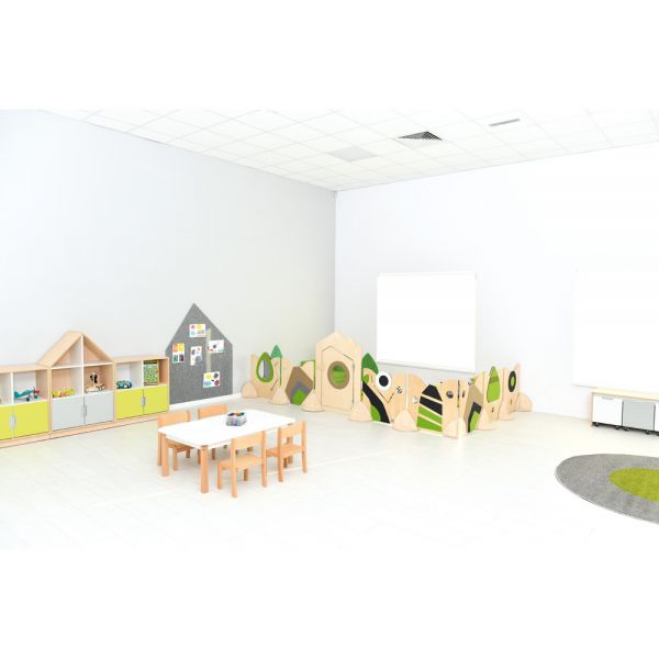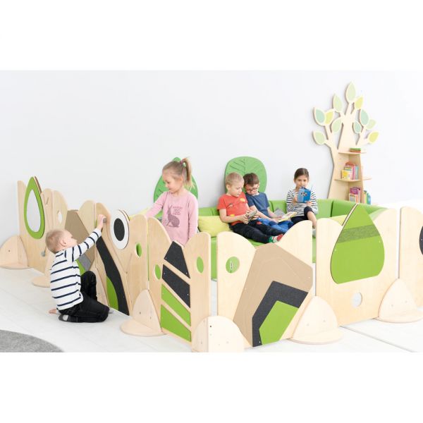 Panourile din gama Flora de la Moje Bambino sunt solutia perfecta pentru a delimita sau creea spatii de joaca interioare destinate copiilor de la crese, gradinite si scoli. Panourile pot separa zonele de joaca de cele destinate pentru invatat, delimitand astfel joaca de orele de curs. Design-ul minimalist si simbolurile care fac referire la natura prezinta o solutie eleganta pentru tematica dorita.