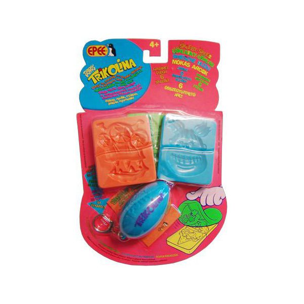 Material cu aspectul plastilinei, dar care are proprietati elastice. El se intinde, sare, poat efi modelat, vine intr-o gama variata de culori si arome; multifunctional atat prin proprietatile sale iesite din comun cat si prin forma de prezentare: incorporat intr-un ou din plastic, acesta este in acelasi timp spatiul unde trikolina se pastreaza dupa folosire, si un breloc. Setul contine accesorii care dau o forma finala modelelor obtinute prin modelarea trikolinei.