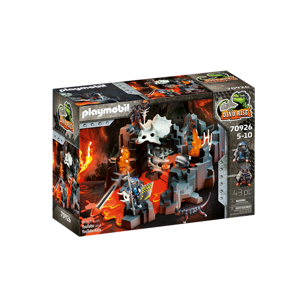 De asemenea, pentru Ian calatoria incitanta continua. El trebuie sa se confrunte cu misticul Gardian al Minei de Lava si sa rezolve sarcini in izvorul sau de lava. Pe langa pericolul lavei de foc, totusi, Ian trebuie sa evite mai intai numeroasele capcane. Daca craniul de dinozaur este inclinat inapoi, un proiectil de flacara este lansat. Dar Ian nu se teme de pericol si este hotarat sa-l invinga pe gardianul energiei. Setul include: membrul echipei Dino Rise, Ian, si un gardian, un diavol spin, un izvor de lava cu capcane mecanice, un scut, echipament pentru Ian si multe altele pentru aventuri incendiare. Lava din silicon expandabil permite personalizarea arcului.
