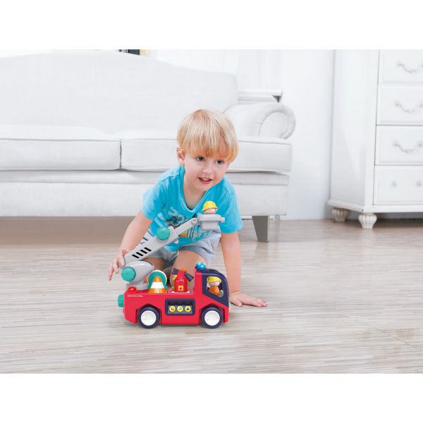 Jucaria masina de pompieri vine doata cu 10 functii pentru constientizarea sigurantei intr-un incendiu.