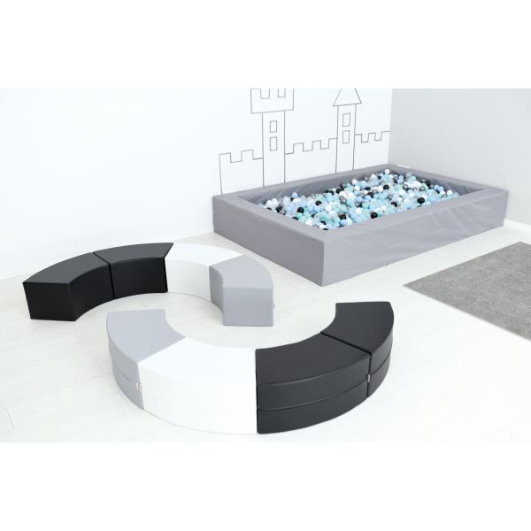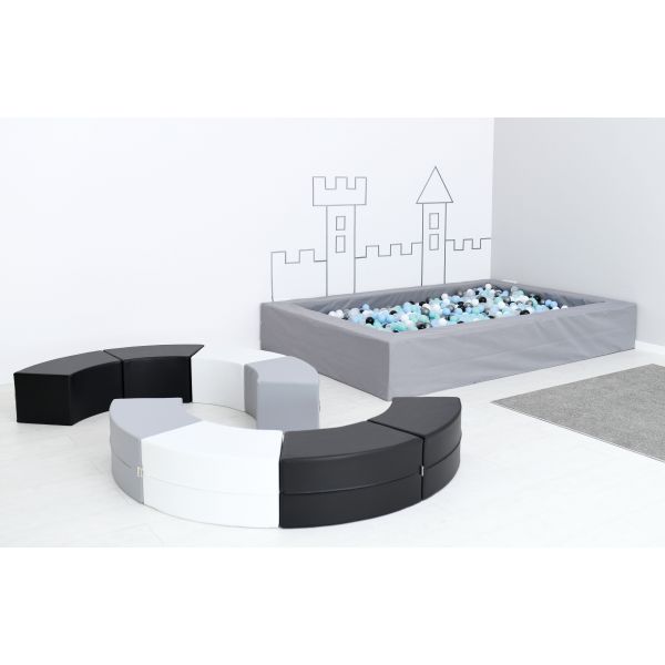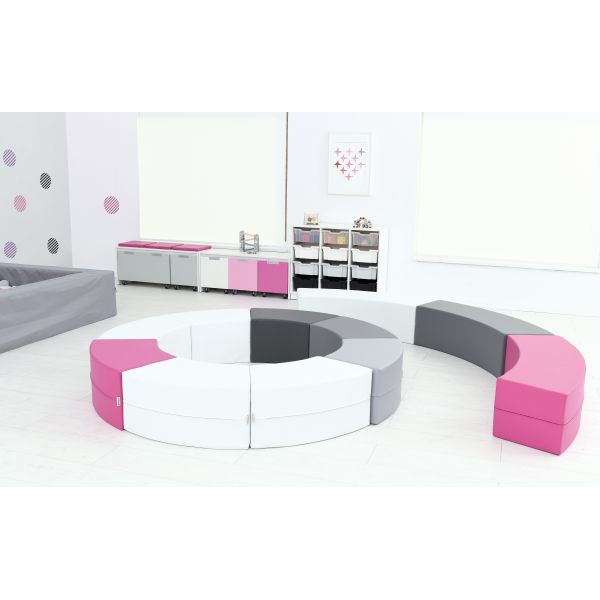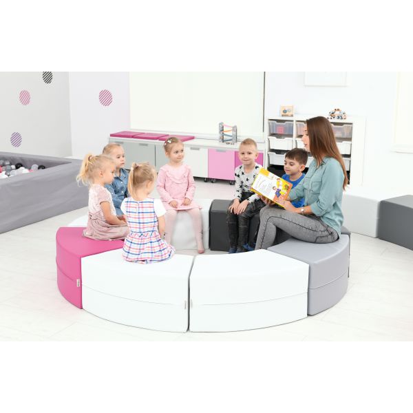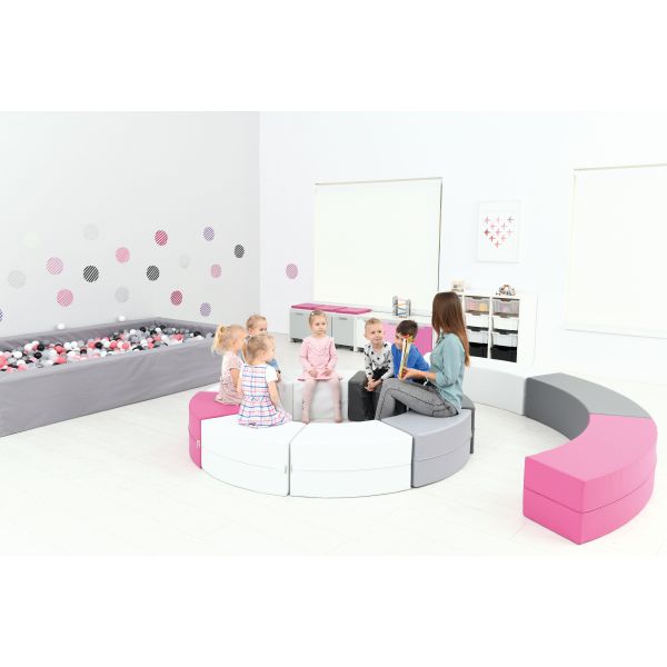 Puf din spuma acoperit cu material PVC rezistent, fara ftalati, usor de curatat.