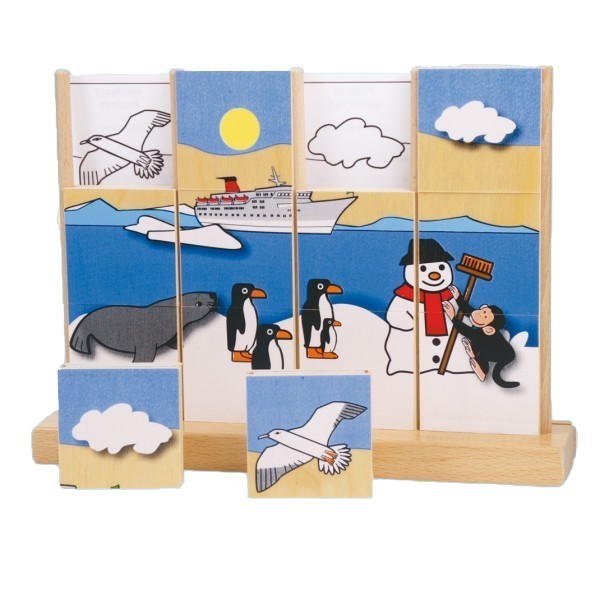 Puzzle din lemn conceput cu carduri de proba pentru lucru in plan vertical.