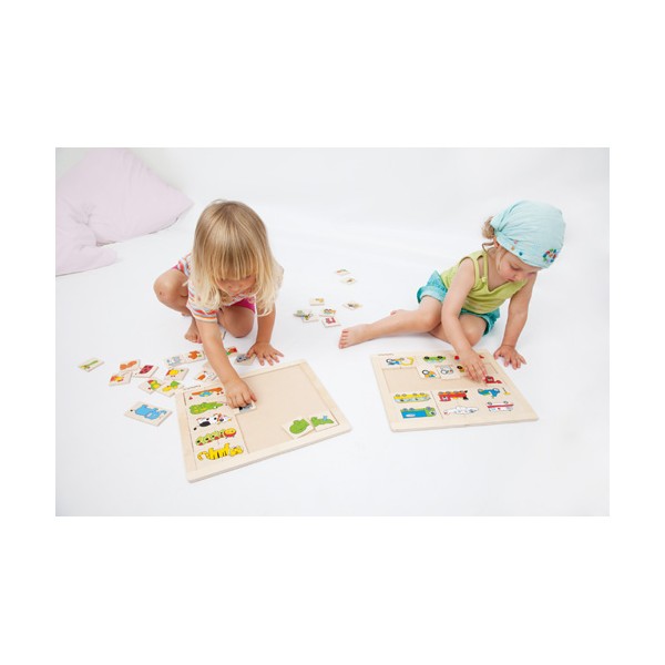Piesele pot fi amestecate si copilul trebuie sa identifice perechile si sa le potriveasca.