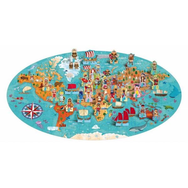 Puzzle-ul contine 200 de piese frumos ilustrate cu harta lumii antice si repere vizuale ale marilor civilizatii, de la Egiptul faraonic, Grecia si Roma antica, la Imperiul Chinez, civilizatiile mesoamericane si multe altele