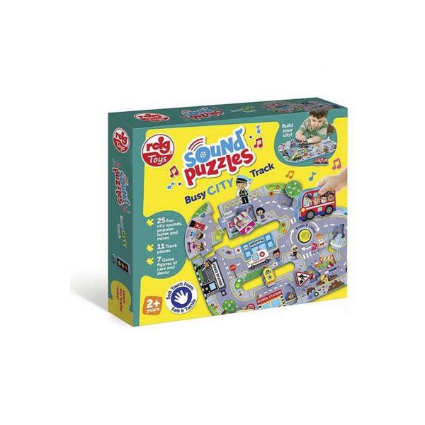Puzzle cu sunete ce contine 11 piese pentru a construi pista si alte 7 masinute si elemente de decor. Jucaria este fabricata din spuma Eva, un material plastic moale. Cei mici se vor distra ascultand sunetele diverselor vehicule sau melodii, jocul fiind un bun prilej pentru a invata despre semnele sau regulile de circulatie.