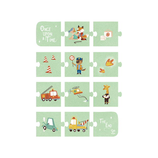 Acest set de 4 puzzle-uri are un total de 57 de piese, plus 12 piese de povestire pentru a ajuta la dezlantuirea pasiunii creative a copilului. Exista, de asemenea, un poster de referinta la indemana pentru a ajuta la asamblarea puzzle-urilor sau chiar pentru a agata pe perete!