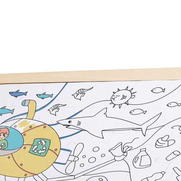 Puzzle din lemn 2 in 1 - Salvarea Oceanului (50 piese), cu fata dubla si activitate colorare