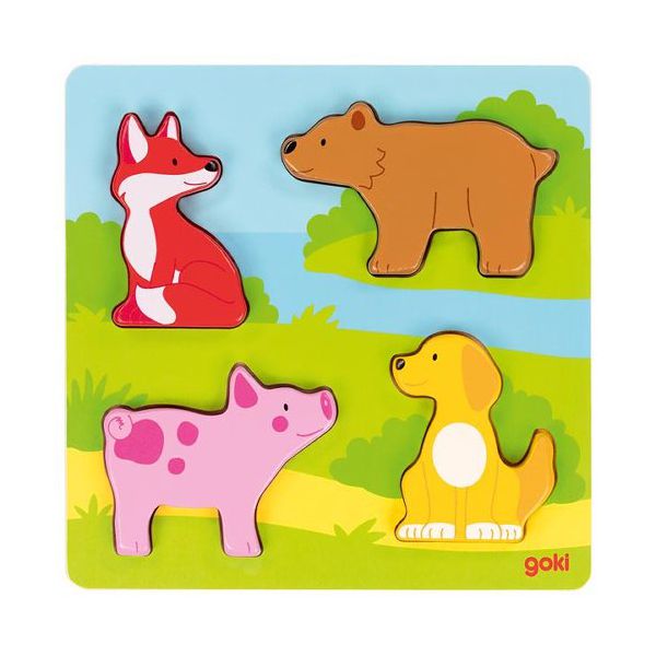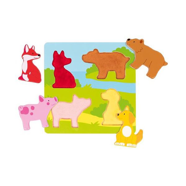 Puzzle tactil din lemn Atinge si descopera Animale