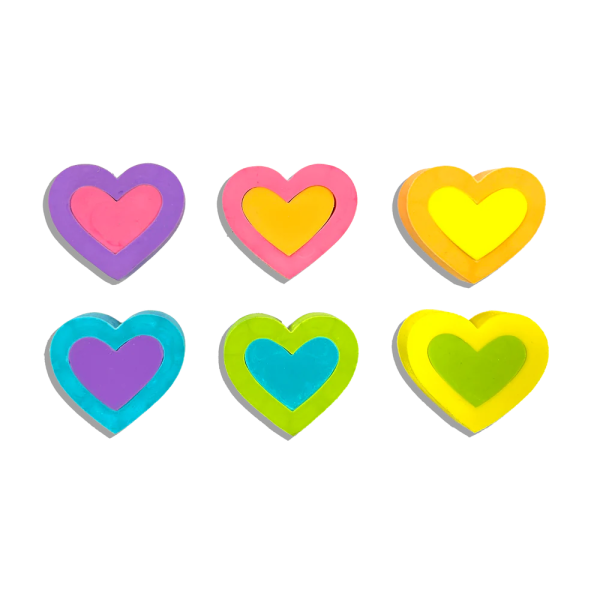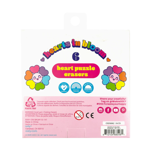 Transforma stersul intr-un joc distractiv cu Radiere Inimi Inflorite , Hearts in Bloom! Set de 6 radiere puzzle, colorate si stivuibile, perfecte pentru teme, proiecte creative sau joaca libera. Distractie, culoare si creativitate la fiecare pas!