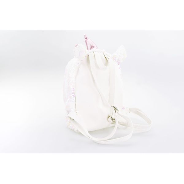 Rucsac magic decorat cu paiete reversibile, urechi si corn de unicorn. Prevazut cu buzunar frontal, curele reglabile si detalii colorate. Un accesoriu practic si stralucitor pentru fetite de peste 6 ani.