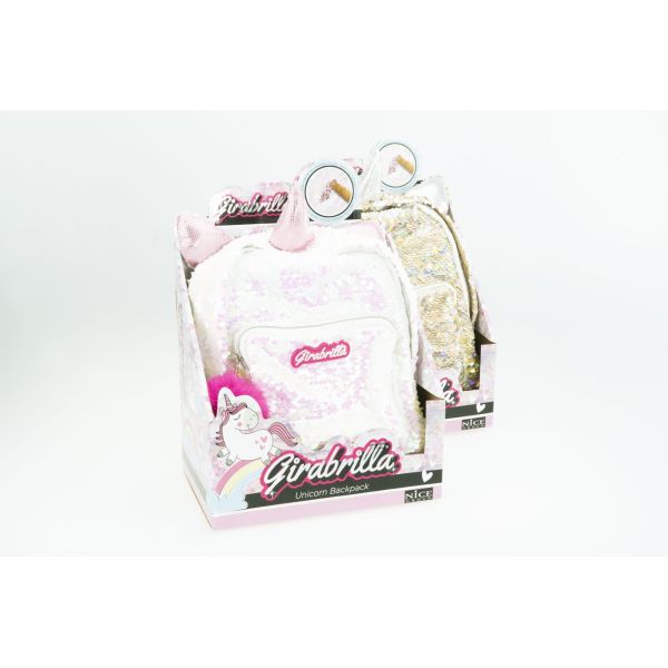 Rucsac fetita Girabrilla , model Unicorn cu paiete reversibile, bretele reglabile si buzunar frontal