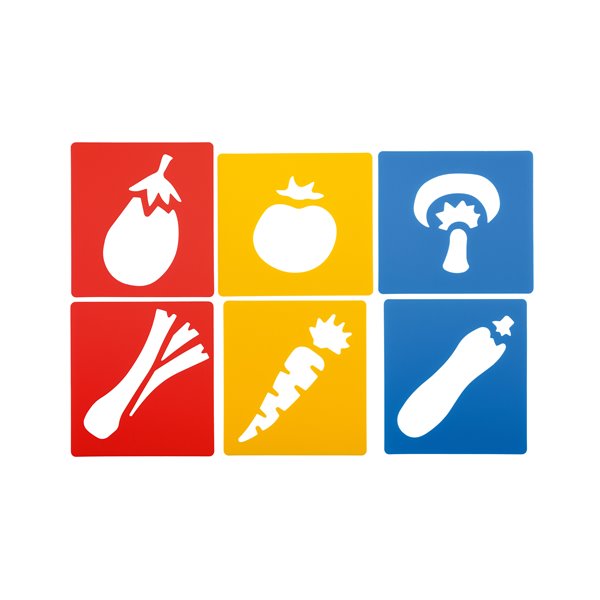 Set de 6 sabloane tematica Legume, 14,5 x 15,5 cm, ideal crese, gradinite si scoli