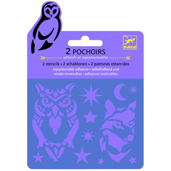 Vârsta recomandată: +6 ani. 2 șabloane cu adeziv, repoziționabile. Confecționat din materiale non-toxice, cu vopsele non-toxice, conform reglementărilor EN71&ASTM. AVERTISMENT: Contraindicat copiilor sub 3 ani. Se recomandă supravegherea copilului de către un adult în timpul jocului. Citiți cu atenție eticheta produsului înainte de a înmâna jucăria copilului. Producător: Djeco, Franța