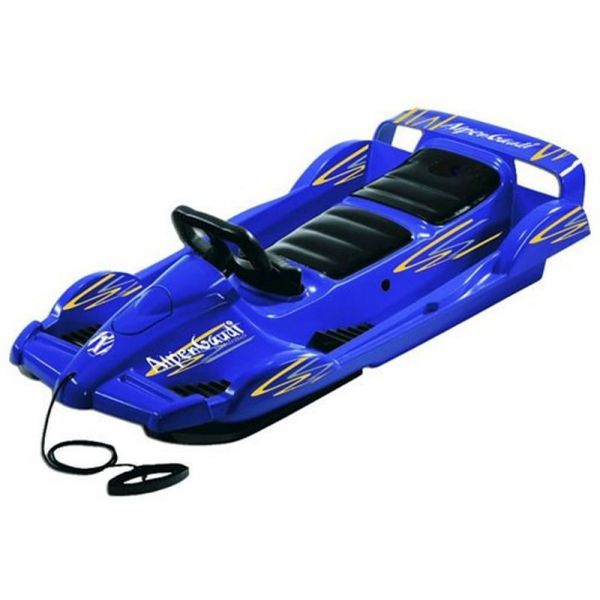 Dispune de o franghie cu maner de plastic care ofera posibilitatea de a trage Sanie Double Race din fata