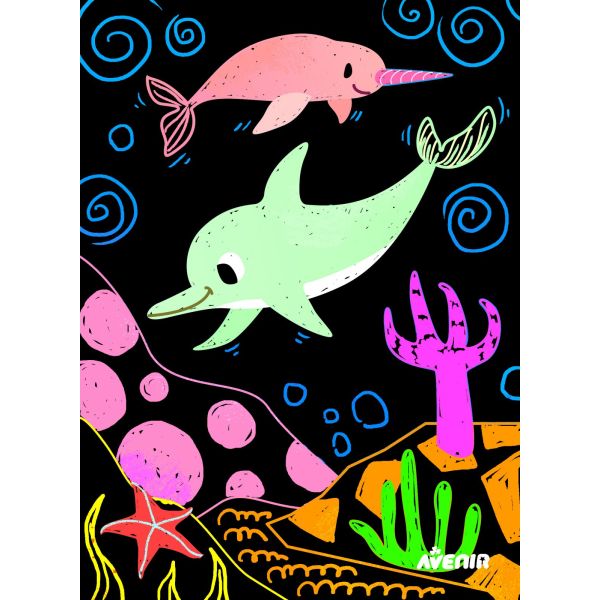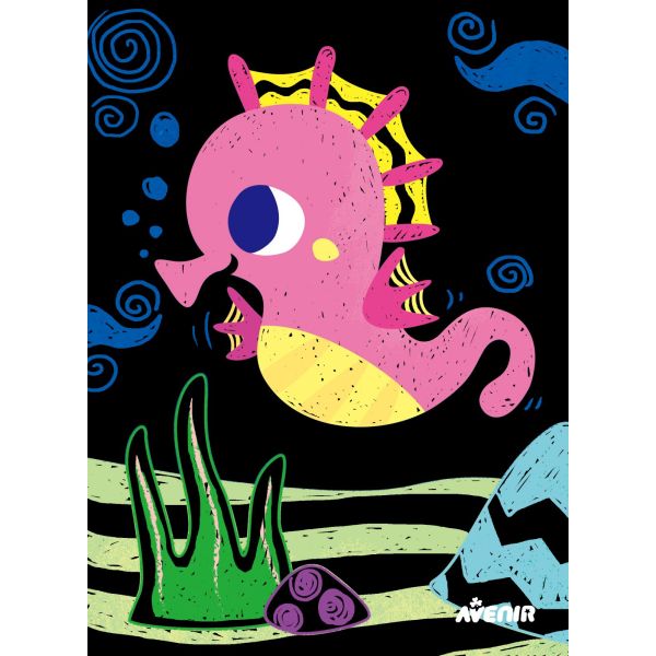 Creati opere de arta frumoase cu acest set Junior Scratch Art de la Avenir. Tot ce trebuie sa faceti este sa razuiti suprafata neagra cu instrumentul inclus pentru a descoperi un design uimitor viu colorat. Acest set de arta captivant consta din opt planse diferite de razuit si dezvaluit, inclusiv diversi prieteni adorabili de mare.