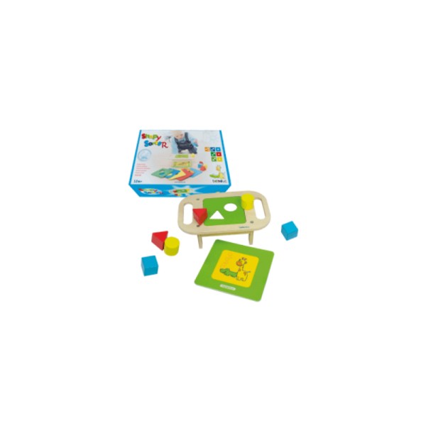7 placi de sortare diferite cu unu, doua sau trei orificii, astfel incat exista trei niveluri de dificultate.