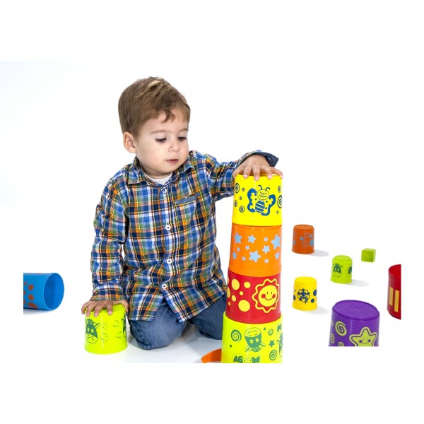 Cupele pot fi folosite pentru jocurile cu nisip, fie se pot cladi unele peste altele (obtineti un turnulet de 95 cm inaltime) sau se pot potrivi unele in altele.