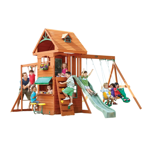 Transforma gradina intr-un adevarat centru de distractie cu KidKraft Ridgeview Deluxe Clubhouse Wooden Swing Set, un complex de joaca multifunctional care combina spatiu de catarare, leagane, clubhouse si zona de joaca imaginativa. Conceput pentru pana la 9 copii activi, acest loc de joaca ofera o varietate de activitati care stimuleaza miscarea, creativitatea si socializarea.