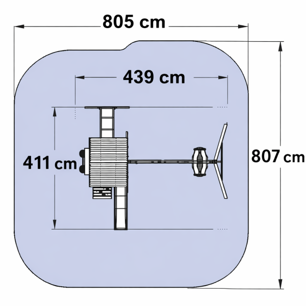 Copiii pot urca spre clubhouse pe peretele de catarare tip rock wall sau pe scara de acces, pot traversa barele monkey bars, iar apoi pot cobori rapid pe toboganul wave slide cu margini inalte pentru un plus de siguranta. Zona de leagane include doua leagane clasice cu franghii soft-touch si un glider premium pentru unul sau doi copii, ideal pentru joaca impreuna.