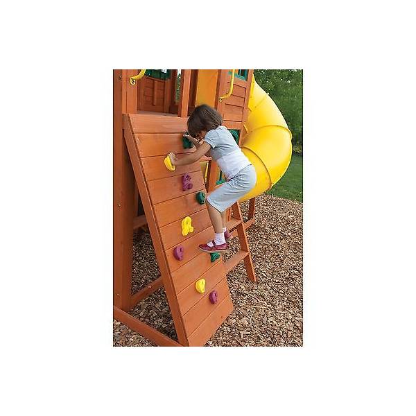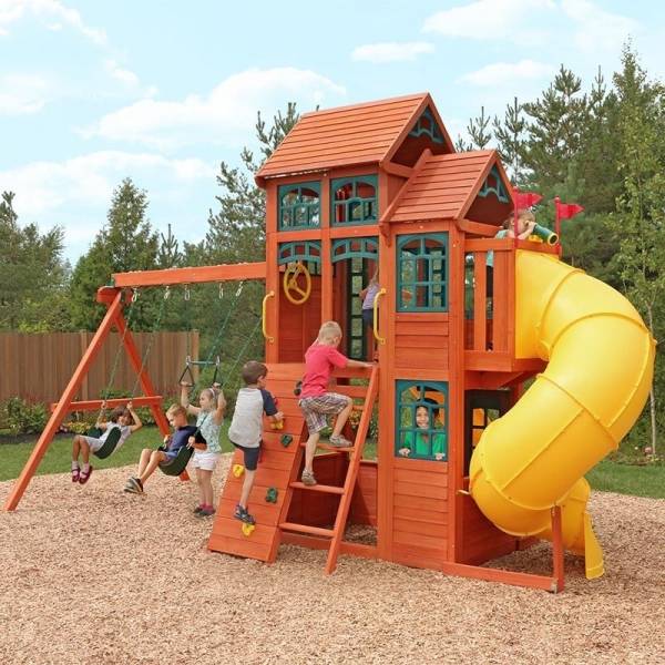 Complex de joaca din lemn Canyon Ridge Kidkraft este ideal pentru curtile mai mari, fiind destinat pentru maxim 10 copii in acelasi timp.