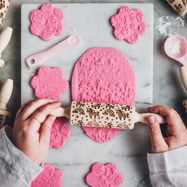 Este greu de imaginat ceva mai adorabil decât prăjiturile dulci în formă de inimă cu unicorni, curcubee și stele. Așa că nu este nevoie să-ți imaginezi, doar acționează! Cu o astfel de rolă sculptată cu model de unicorn, poți coace după pofta inimii prăjituri minunate, care vor încânta cu modelele lor orice prințesă și nu numai – vor fi pur și simplu drăguțe și originale! Rolul de aluat va fi perfect ca un cadou interesant sau gadget pentru coacerea obișnuită în familie, în special în duourile de fete, cărora le place tot ce este dulce și drăguț. Deși un duo tată+fiică și prăjituri unicorn sună total emoționant!