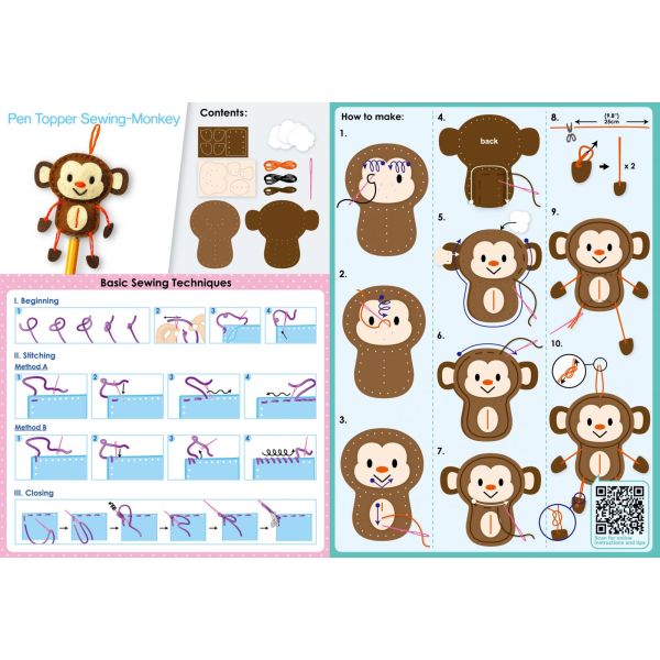 Set de cusut DIY - decoratiune topper pentru creion - Maimuta