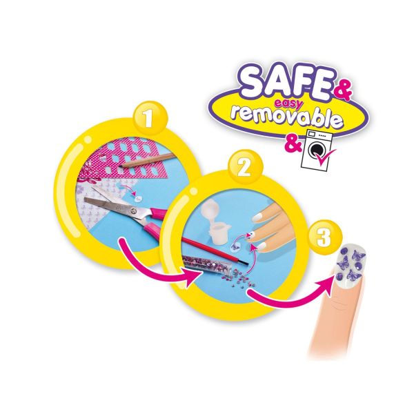 Un must-have pentru toate micile fashioniste. Decorati setul de unghii false cu acuarele, impachetari si pietre pretioase. Distractive si usor de utilizat, unghiile sunt, de asemenea, sigure si usor de indepartat. O idee grozava pentru un cadou sau o activitate in zilele ploioase, acest kit va ajuta la dezvoltarea coordonarii ochi-mana la copii.