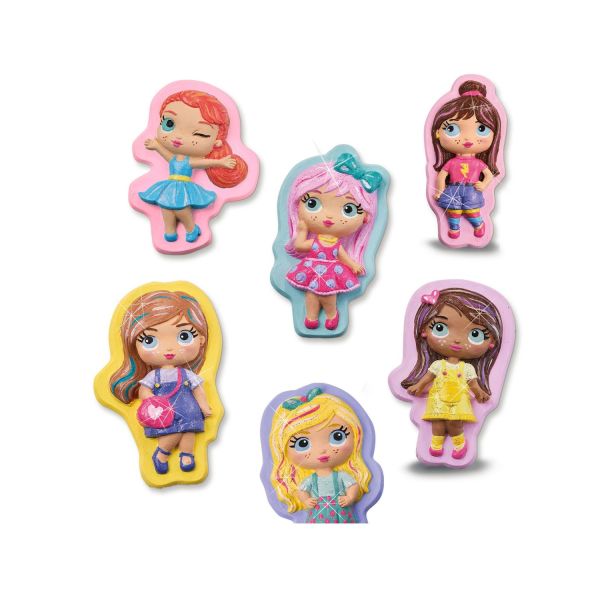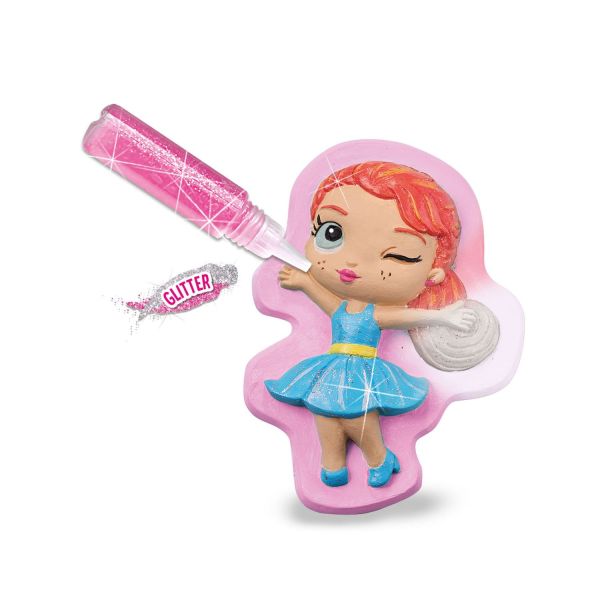 Cu acest set de mulaj, poti crea fete la moda la moda. Folositi vopselele groase in sase culori stralucitoare si adeziv cu sclipici pentru a proiecta si picta tinute si culori de par.