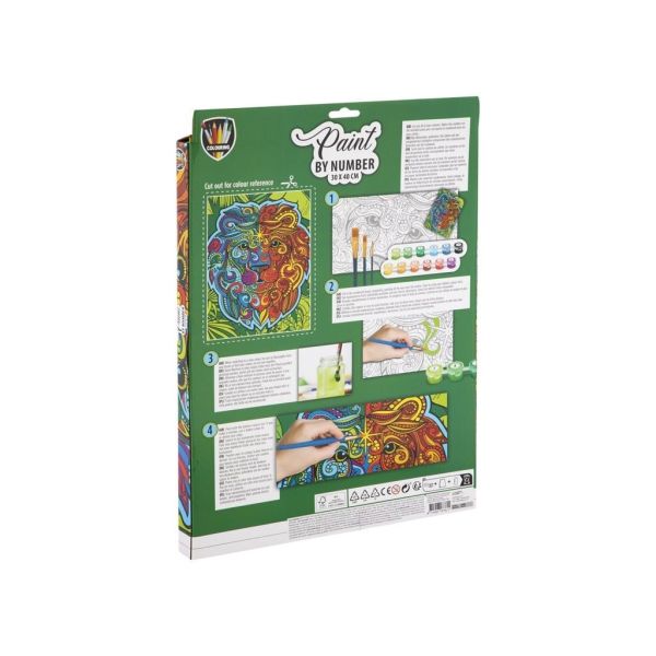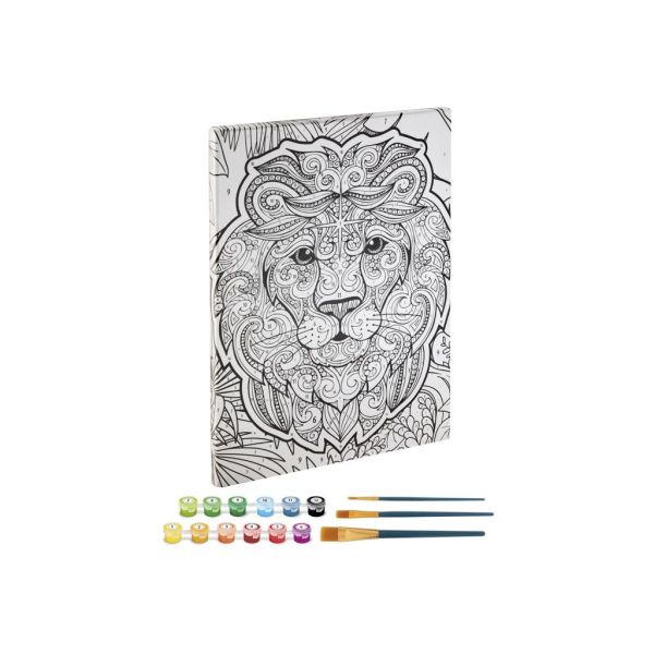 Transforma-ti creativitatea in arta cu setul de pictura pe numere! Acest set este perfect pentru cei care doresc sa exploreze arta intr-un mod structurat si placut. Dimensiune panza: 44 x 31 x 2 cm, intinsa pe un cadru cu deschidere, gata de a fi expusa sau utilizata in timpul lucrului. Panza prezinta un design preimprimat cu un leu, cu numere clare ce corespund culorilor de vopsea, facilitand procesul de pictura. Include: 12 acuarele, 3 pensule. deal pentru stimularea abilitatilor motorii fine si dezvoltarea coordonarii ochi-mana. Pictura pe numere ajuta la perfectionarea tehnicii de aplicare a vopselei si dezvolta rabdarea. Este o activitate relaxanta care ofera un sentiment de realizare pe masura ce imaginea prinde viata. Este perfecta pentru relaxare si pentru a petrece timp de calitate singur sau alaturi de altii. Varsta recomandata: 8 ani+ Atentie! Nu este recomandat copiilor sub 3 ani. Poate contine piese mici. Pericol de sufocare. A se utiliza sub supravegherea unui adult.
