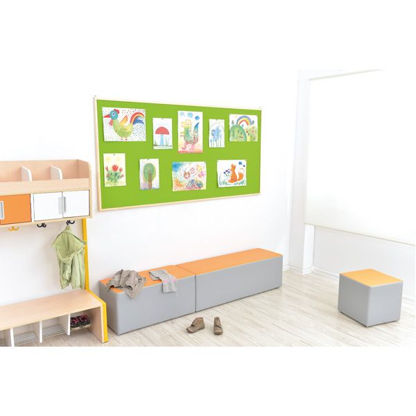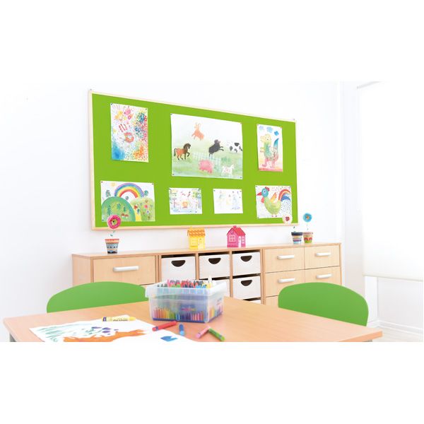 Panou de pluta colorata cu rama de lemn ideal pentru prezentarea lucrarilor de arta sau pentru postarea anunturilor scolare.