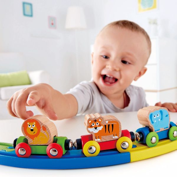De multi ani, Hape a creat jucarii fantastice, de inalta calitate, folosind materiale ecologice si durabile, fiecare produs fiind atent proiectat pentru a stimula abilitatile senzoriale, fizice si emotionale. Leii si tigrii si elefantii, oh! Zburati prin jungla intr-o aventura feroviara cu trei prieteni minunati. Cand ajungeti la destinatie, noii prieteni cu animale pot iesi din tren pentru a avea mai multe aventuri.