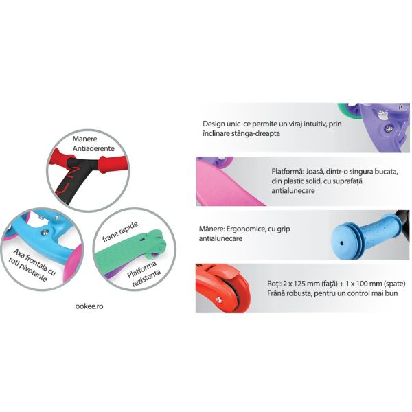 Această trotinetă este special concepută pentru copiii cu vârsta între 3 și 8 ani, oferind o experiență sigură și distractivă. Roțile din poliuretan rezistent, împreună cu platforma joasă și mânerele ergonomice, asigură stabilitate și confort maxim în timpul utilizării.