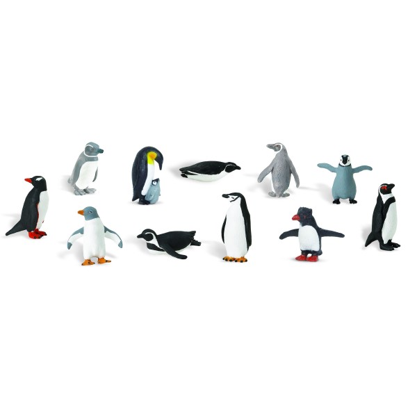 Setul contine 10 mini figurine colectionabile din plastic, vopsite manual, reprezentand pinguini.