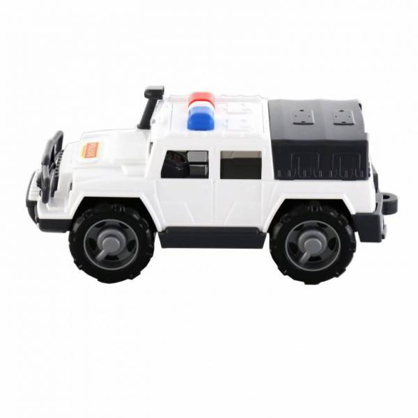 Vehiculul de teren are culoare alba si este dotat cu rampa luminoasa si priza aer offroad. Usile sunt fixe.