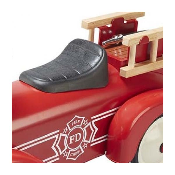 Construită din metal solid, cu finisaje argintii realiste și detalii autentice, mașinuța aduce un plus de stil și calitate în orice cameră de joacă. Cele patru roți acoperite cu cauciuc asigură o deplasare lină și sigură, iar cele două scărițe din lemn și clopoțelul metalic completează perfect designul de pompier.