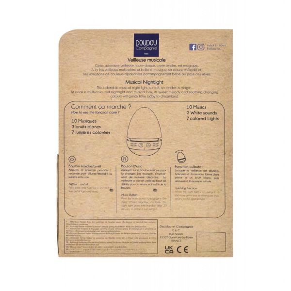 Un inceput bland pentru somnul bebelusului Ofera-i micutului tau o lume de vis, plina de iubire si liniste, cu aceasta adorabila veioza muzicala iepuras pufos. O combinatie perfecta intre lumina, muzica si confort, care va transforma fiecare noapte intr-o poveste magica! Culorile pastelate si materialele ultra-moi sunt perfect create pentru a oferi un prim contact plin de tandrete, iar lumina difuza ajuta la crearea unei atmosfere linistitoare. Sunetele melodioase si calmante vor deveni rapid cantecul de leagan preferat al bebelusului, incurajand un somn linistit si odihnitor. Veioza emite o lumina moale si reconfortanta, ce ajuta la crearea unui colt de vis perfect pentru adormire. Plusul moale si pufos este perfect pentru a fi imbratisat, iar micutul tau il va lua cu el oriunde , acasa sau in vacanta. Cu fiecare noapte, iepurasul muzical devine un companion de incredere, care il va linisti si ii va oferi un sentiment de siguranta si confort. Cadoul perfect pentru orice bebelus, ideal pentru o nastere sau o aniversare. Beneficii Somn dulce si odihnitor: Melodiile linistitoare si lumina placuta creeaza un spatiu perfect pentru ca micutul tau sa adorma cu un zambet pe buze. Stimulare senzoriala: Miscarile de balans ale lampitei capteaza atentia bebelusului si ii stimuleaza simturile intr-un mod jucaus. Confort emotional: Acest prieten de plus devine o sursa constanta de alinare, oferindu-i bebelusului un sentiment de iubire si siguranta. Usor de ingrijit: Husa detasabila face curatarea foarte simpla, iar materialele de calitate isi pastreaza moliciunea chiar si dupa mai multe spalari. Un design adorabil si functional. Miscarile de balans vor captiva cu siguranta atentia micutului tau. 10 melodii, 3 sunete albe si 7 optiuni de lumina adauga o nota de magie fiecarei nopti. Aceasta lampita de veghe nu este doar un cadou adorabil, ci si un companion care va insoti bebelusul in fiecare noapte, aducandu-i liniste si vise frumoase! Dimensiune: 16 cm Potrivita de la nastere Husa detasabila Functioneaza cu 3 baterii AAA LR03 (neincluse) Conforma cu normele europene CE Compozitie: Material textil + umplutura: 100% poliester, veioza: plastic ABS Ingrijire: indeparteaza carcasa luminoasa si spala plusul intr-un sac pentru jucarii la 30 pentru a-i pastra moliciunea. Uscare naturala sau la temperatura joasa.